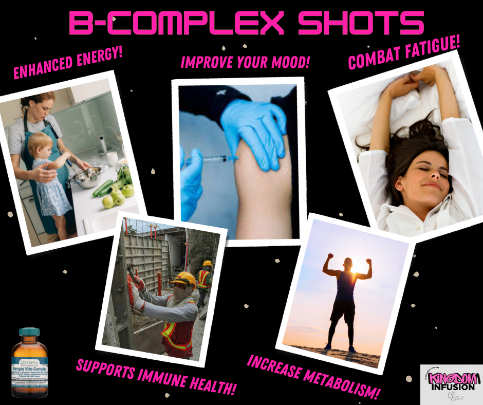 Boost your energy and metabolism with our B-12 and B-Complex Injections. These injections are perfect for those constantly on the go or needing an extra boost. Experience improved mood, better sleep, and enhanced overall wellness. Kingdom Infusion brings these revitalizing injections directly to you, making wellness convenient and accessible.